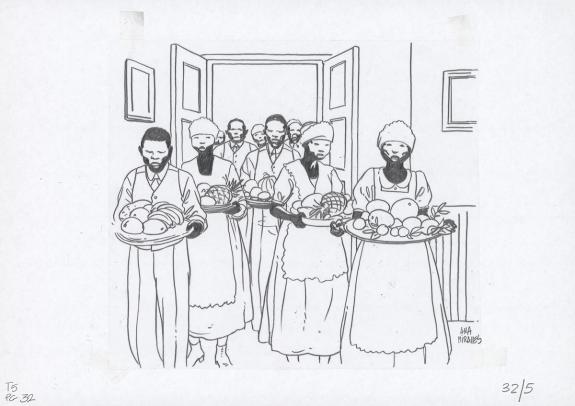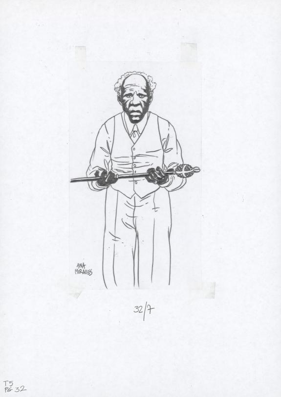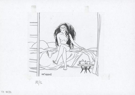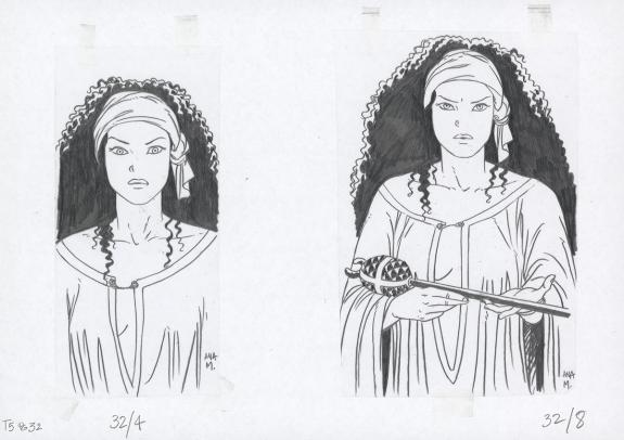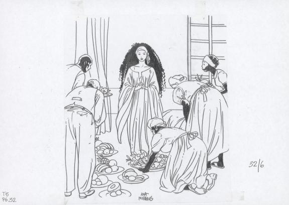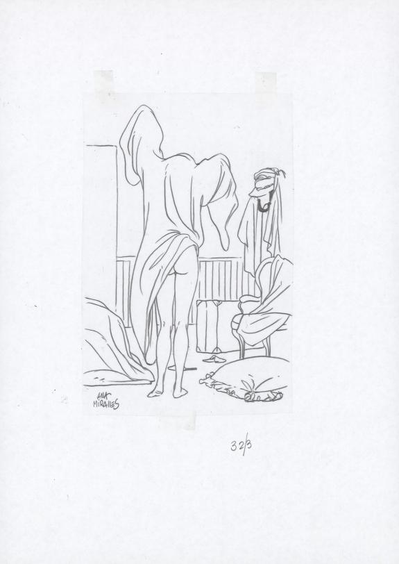 > Catalogue > Ana Miralles > Djinn > Africa > Planche originale n°32 accompagnée de ses 7 premières étapes à la mine de plomb sur calque