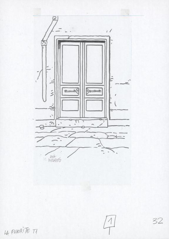 Planche originale n°32 accompagnée de ses 5 étapes préparatoires à la mine de plomb