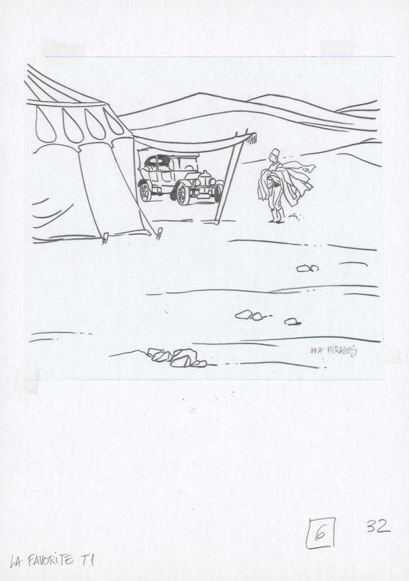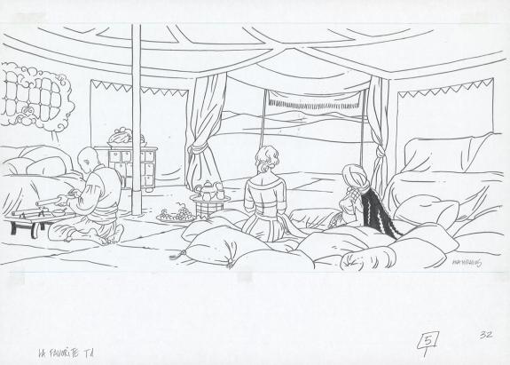 > Catalogue > Ana Miralles > Djinn > La Favorite > Planche originale n°32 accompagnée de ses 5 étapes préparatoires à la mine de plomb