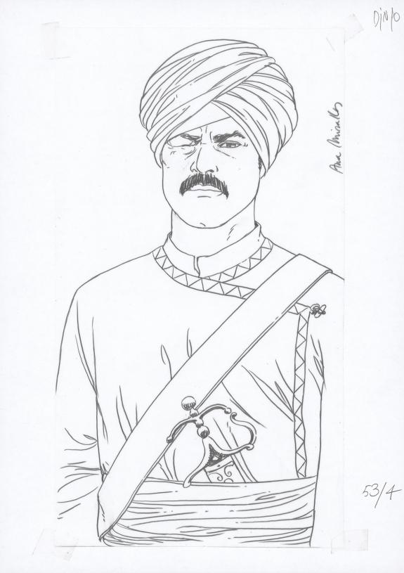 Planche originale n°53 accompagnée de ses 6 étapes préparatoires à la mine de plomb sur calque