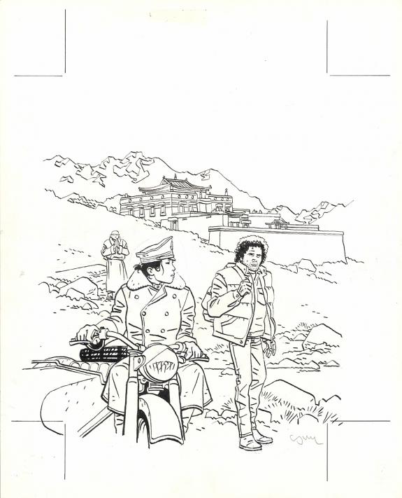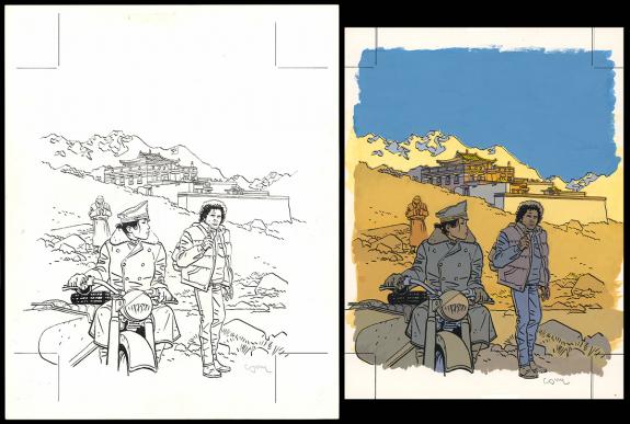 > Catalogue > Cosey > Jonathan > Intégrale n°4 - T.10-12 > Couverture originale accompagnée de sa mise en couleur à la gouache sur papier, présence d'une rustine