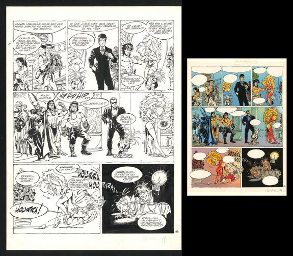 Planche originale n°18 accompagnée de sa mise en couleurs