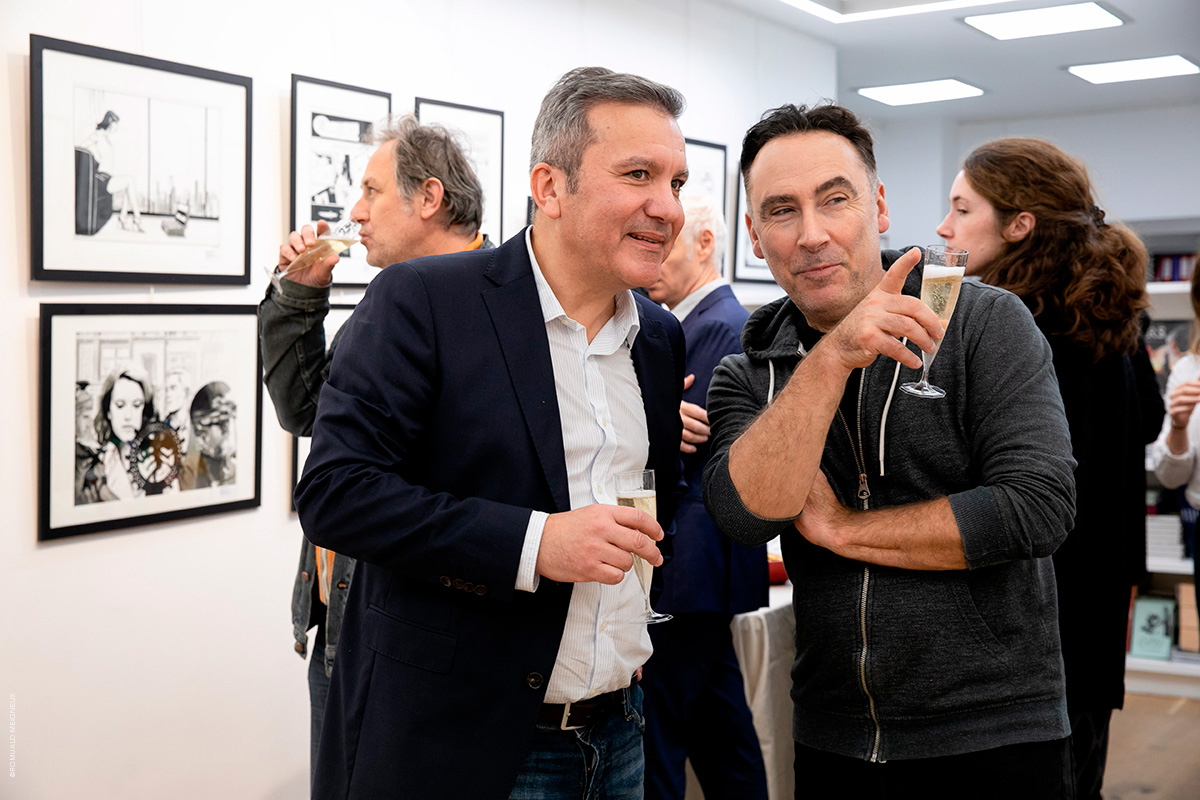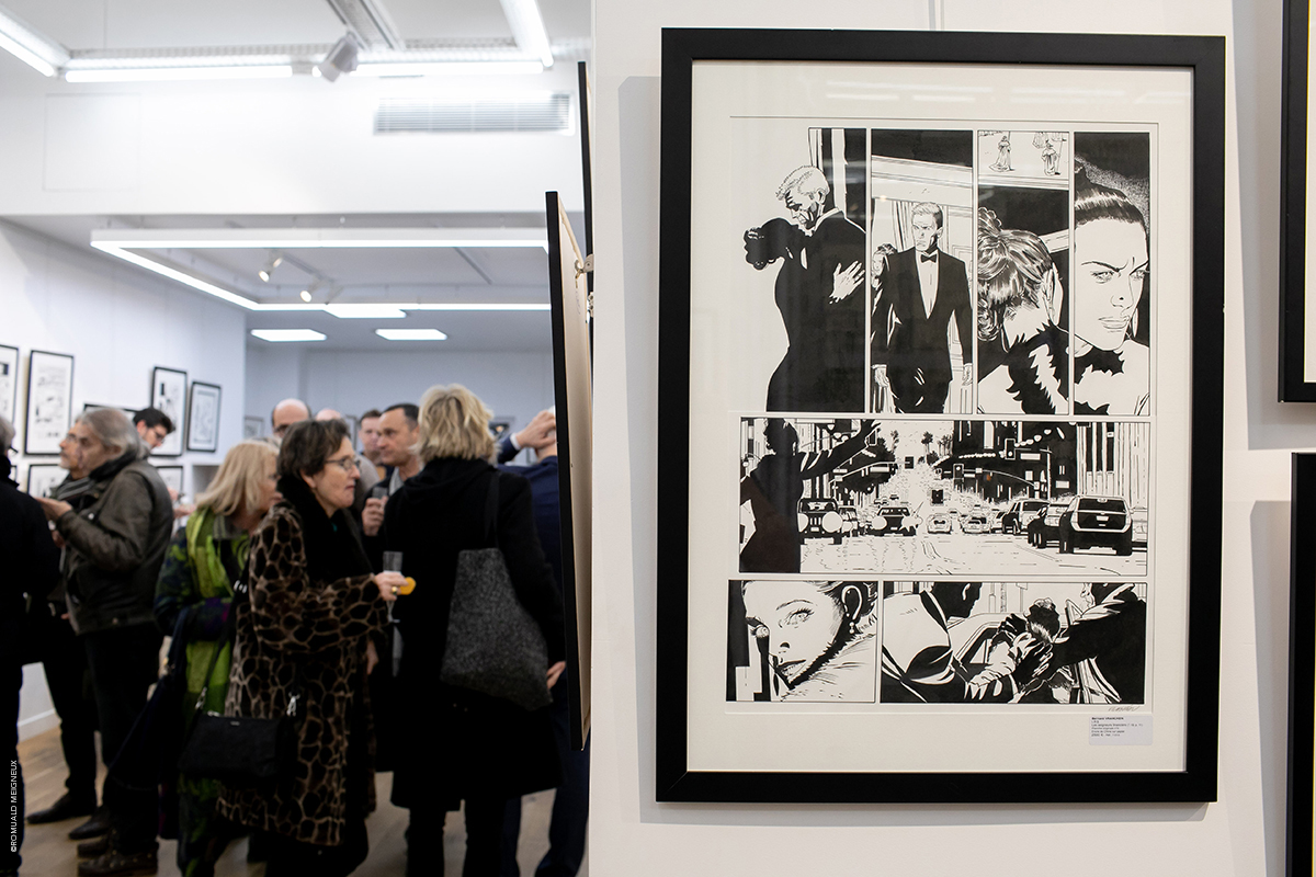 La galerie Daniel Maghen a le plaisir de dédier une exposition à deux maîtres du polar en bande dessinée : Tibet avec Ric Hochet et Bernard Vrancken avec I.R.$ aux éditions du Lombard, du 19 novembre au 7 décembre 2019. Grand classique de la bande dessinée franco-belge des années 60-70, Tibet s’impose rapidement comme l’un des piliers du Journal Tintin, notamment grâce au succès de Ric Hochet, sa série mythique écrite par André-Paul Duchâteau. 78 tomes, des millions d’exemplaires vendus et traduites en sept langues, les enquêtes haletantes de Ric Hochet, jeune journaliste-détective, mêlent réalisme et humour avec de superbes scènes de courses-poursuite dont Tibet avait le secret. L’exposition rassemble près de quatre-vingt-dix planches originales issues notamment de la première époque, dont certaines où l’on peut apercevoir notre héros Ric au volant de sa Porsche. Un point commun avec I.R.$, la série phare de Bernard Vrancken écrite par Stephen Desberg qui nous gratifie également de sensationnelles scènes embarquées avec au volant, le célèbre et charismatique agent du fisc américain : Larry B. Max. Ce thriller passionnant mène au cœur des plus grands scandales financiers, une série incontournable en vingt tomes vendue à deux millions d’exemplaires, qui fait de Vrancken un classique du genre des années 2000-2020. On appréciera indéniablement l’élégance de sa ligne claire qui sert magnifiquement le réalisme du récit, à travers plus de cent originaux rassemblés pour cette rétrospective, organisée à l’occasion des vingt ans de la série. Une vingtaine d’illustrations originales à l'encre de Chine et au lavis, réalisées initialement pour la galerie, et finalement publiées en octobre 2019 dans le hors-série Les Dossiers Max (éd. Le Lombard), seront également présentées. Daniel Maghen, la Famille Tibet, Bernard Vrancken et Stephen Desberg ont le plaisir de vous inviter au vernissage de leur exposition le jeudi 21 novembre, à partir de 19h.
