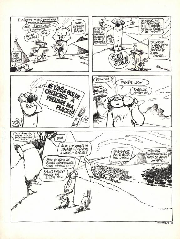 > Catalogue > F'murr > Le Génie des alpages > sabotage et paturage > Planches originales n°192 A et B, histoire en deux planches. Taille indicative par planche