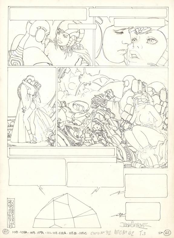 > Catalogue > Juan Gimenez > La Caste des Méta-Barons > Aghnar le Bisaïeul > Planche originale n°62 accompagnée de sa première étape