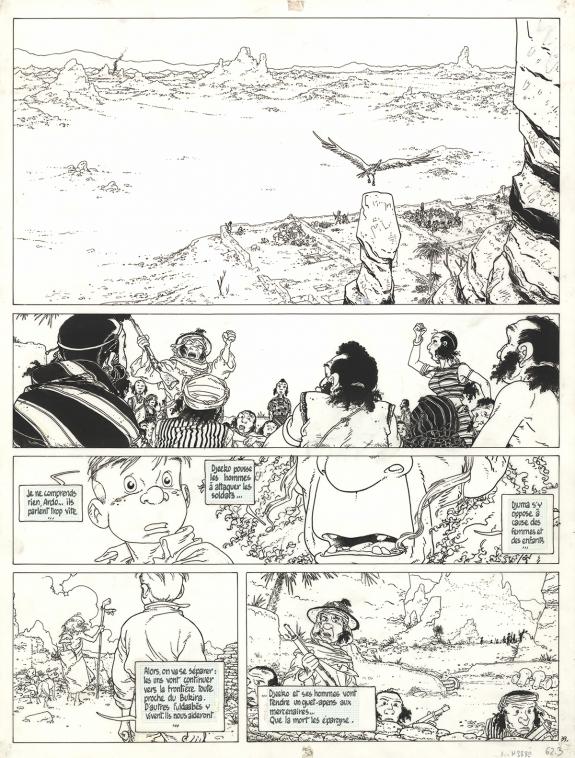 > Catalogue > Michel Plessix > Julien Boisvert > Neêkibo > Planche originale n°39 avec lettrage collé, et sa planche préparatoire au dos crayonné