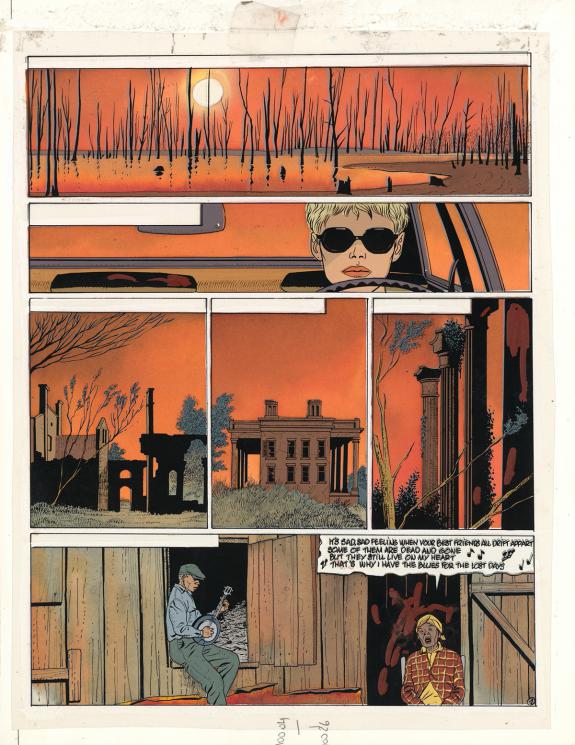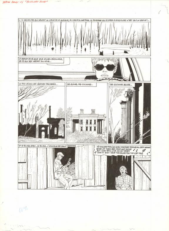 > Catalogue > Renaud > Jessica Blandy > Buzzard Blues > Planche originale n°01 et sa mise en couleur