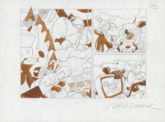 > Catalogue > Ulrich Schröder > Mickey > Runaway Brain > Planche originale n°5 en deux parties