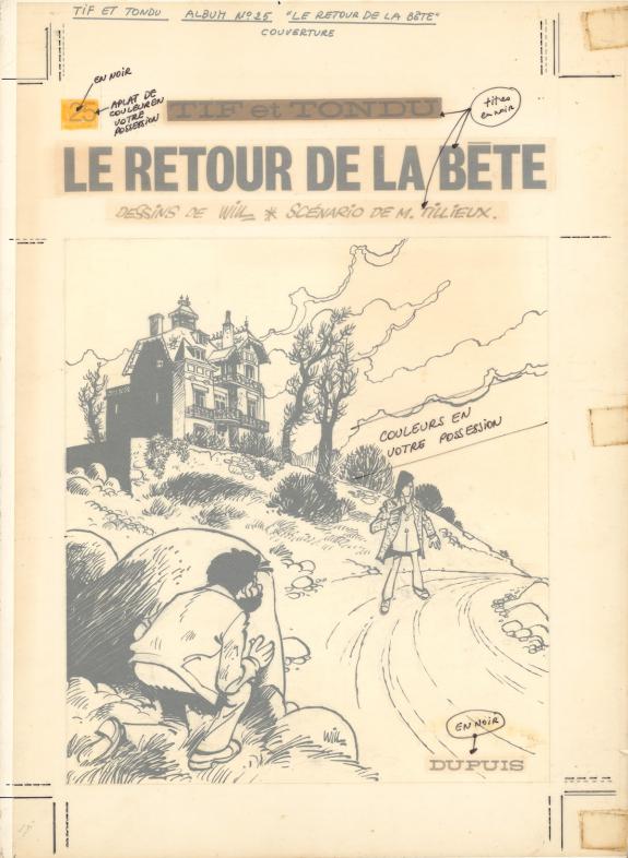 > Catalogue > Will > Tif et Tondu > Le Retour de la Bête > Couverture originale, prépubliée dans Spirou n°1988 paru en 1976. L'illustration de couverture a été montée sur une maquette de l'album