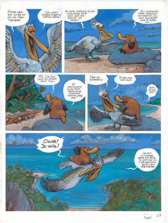 > Catalogue > Yoann > Toto l'ornithorynque > Toto l'ornithorynque et le dragon bleu > Planche originale n°27. Sélection "coup de c?ur de l'été"